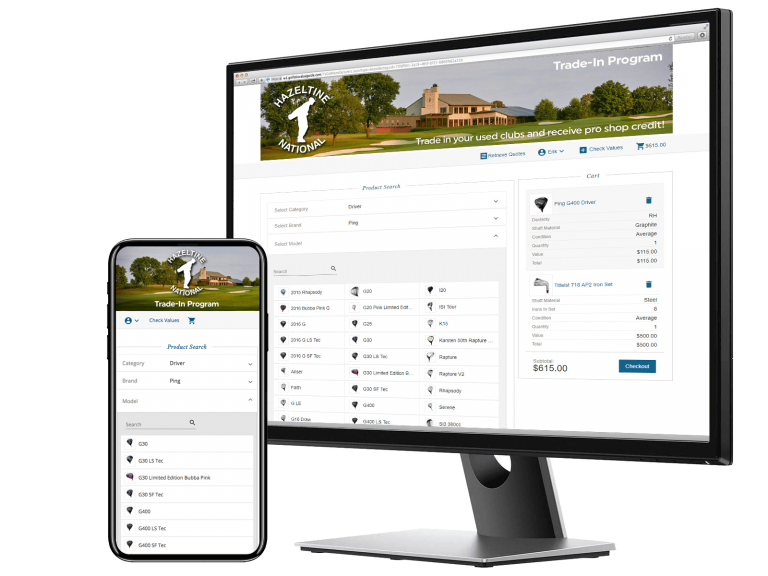 We’ll create a personalized, easy-to-use online trade-in tool branded with your Country Club or business logo, colors, and name. Our technology allows for you to easily and quickly embed on your website and have as your own. You can then drive members and customers to your trade in offering where they can quickly value and set up their trade in with you and then get credit applied directly toward their new equipment purchases with you.